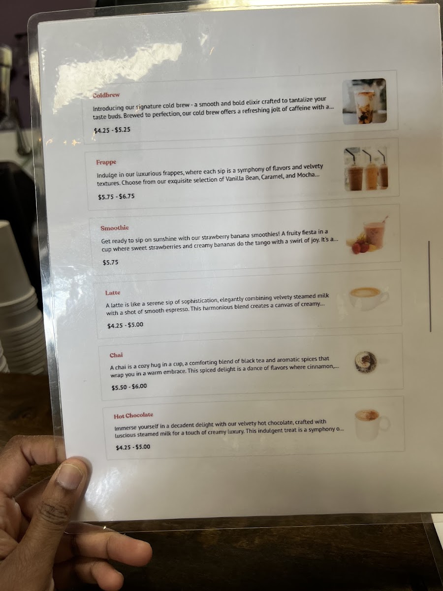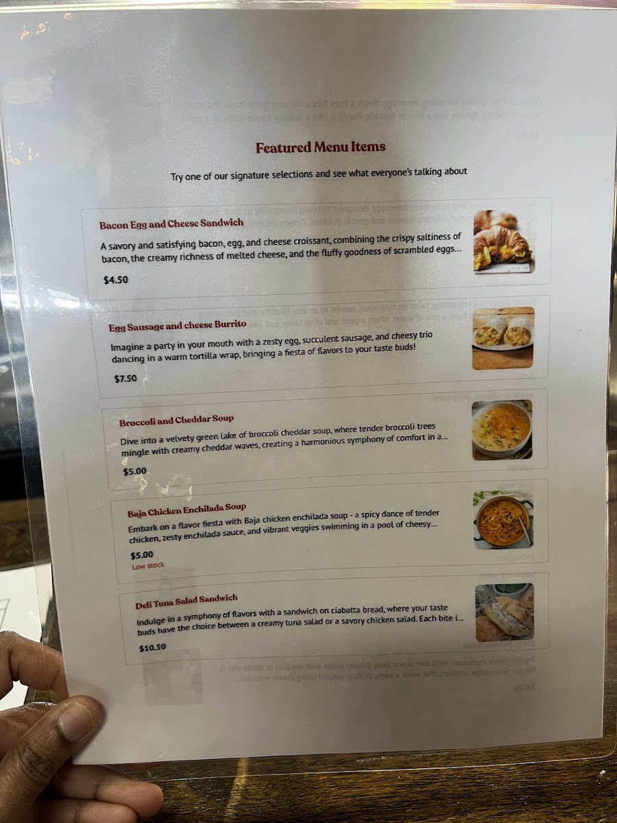 This menu serves both quick orders and casual dining needs, making it appropriate for morning meals, mid-day breaks, and relaxed afternoon visits. Customers can expect options that combine traditional cafe offerings with some Mid-Atlantic touches in their food and drink choices.